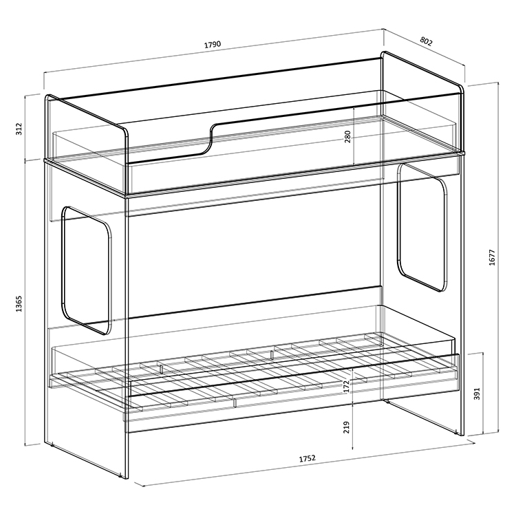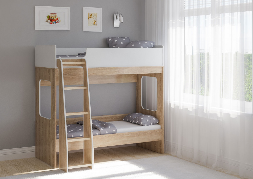 Классическая детская двухъярусная кровать с двумя параллельными спальными местами размером 1750х750 или 1900х750