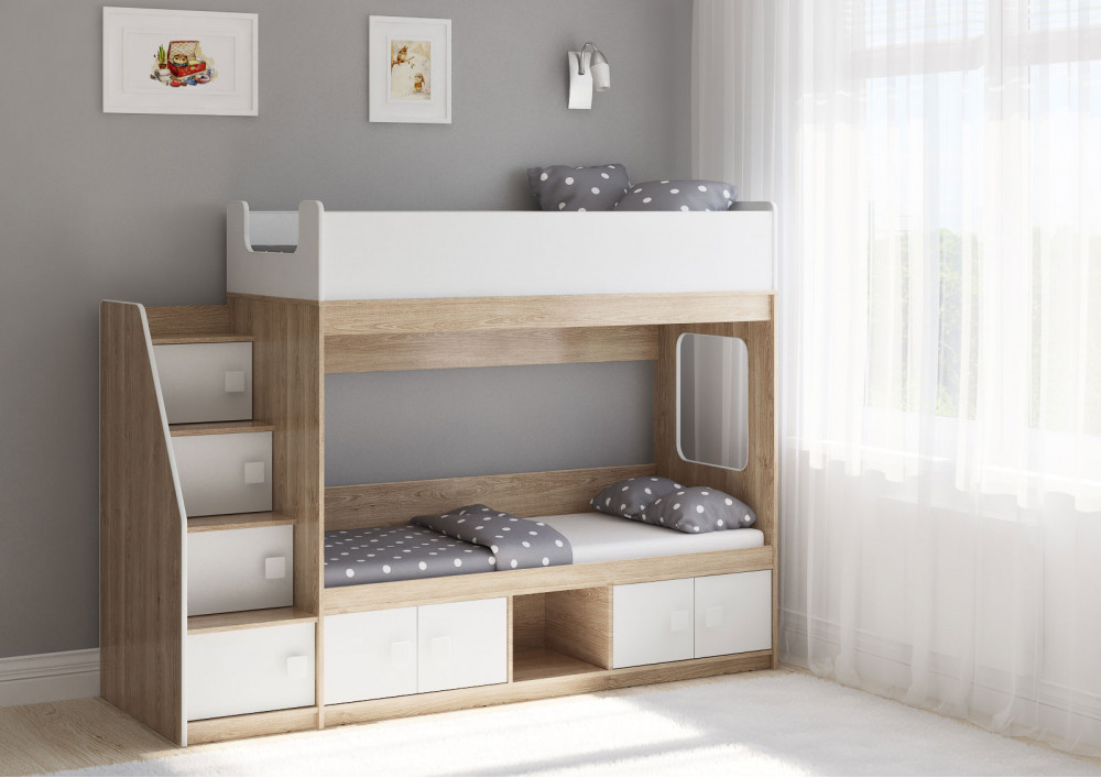 Под нижним ярусом раполагаются закрытые места хранения, оборудованные дверкаии. Ваш ребенок с удовольствием будет хранить там свои любимые игрушки.