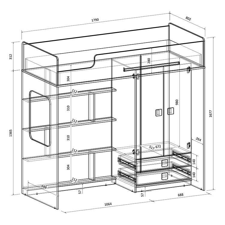 Кровать чердак Легенда C601 –  решение для площади малых габаритов, экономия пространства.